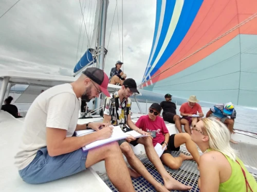Le team building le plus audacieux de l’île ! Partez en mer sur un catamaran pour résoudre la disparition de Laura Cadet, championne de surf. Durant 3 heures, naviguez sur les eaux cristallines tout en interrogeant les suspects. Avouez que mener l’enquête avec le clapotis des vagues et les dauphins comme témoins, c’est plus classe qu’autour de la machine à café ! Vous pourrez monter à bord de 3 catamarans « Grand Bleu » selon la taille de votre groupe.
